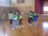 アリーナで「点数ドッヂボール」です。 ビブスの番号がそのまま得点となります。