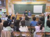 1組は係の子供たちの出し物です。 今日はクイズ係とお笑い係が担当しました。