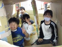 浜黒崎小学校と図工の授業を通して交流しました。自己紹介をしたり、段ボールで何を作...