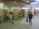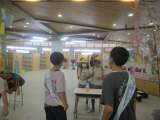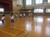 天気が悪く、今日はアリーナでキャッチバレーボールに挑戦した4年生です。