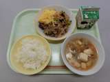 【本日の給食】 ・ごはん ・牛乳 ・揚げ出し豆腐の肉味噌かけ ・いそあえ...