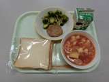 ・食パン ・牛乳 ・チキンハンバーグ ・グリーンサラダ ・野菜とソーセージのトマ...