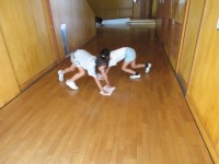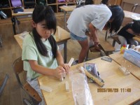 のこぎりとかなづちを使って作品作りに取り組んでいます。用具を使うときに「こわ...