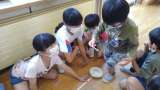 2つ目のゲームは、「豆の引っ越し競争」です。慎重に豆をスプーンにのせて運んでいま...