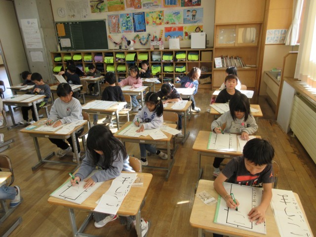 学校での最後の書初め練習です。集中して取り組んでいます。