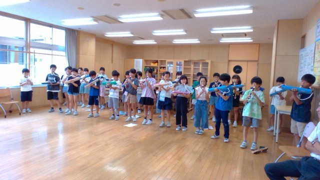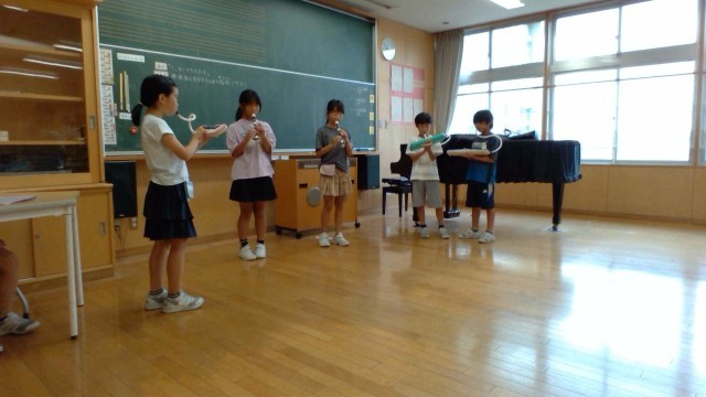音楽の学習では、「ミッキーマウスマーチ」のアンサンブルコンサートをしました。何度も練習を繰り返し息の合った合奏をしていました。全員での発表では、リズムに合わせて笑顔で自信をもって合奏をする姿に感動しました。