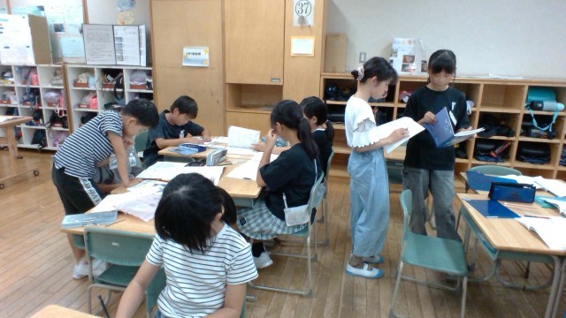 算数科の学習では、割る数が2桁のわり算に挑戦しました。課題が終わった後は、自分で問題を作り友達と解き合ったり説明し合ったりする姿が見られました。