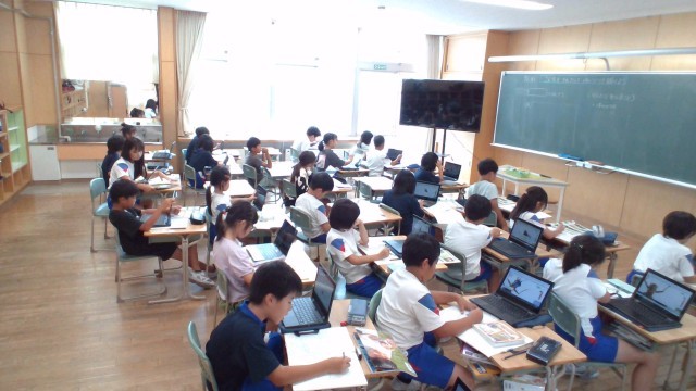 クロムブックを使って昆虫のからだのつくりを調べました。子供たちは、どの昆虫も頭・胸・腹からできているけれど、種類によってからだの形や動きが違うことに気付いていました。