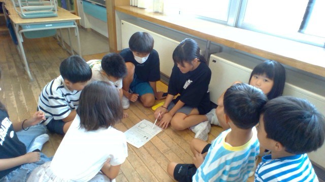 フレンドリー遠足の打ち合わせをしました。5年生として、下級生が安心して活動できるように優しく声をかけていました。