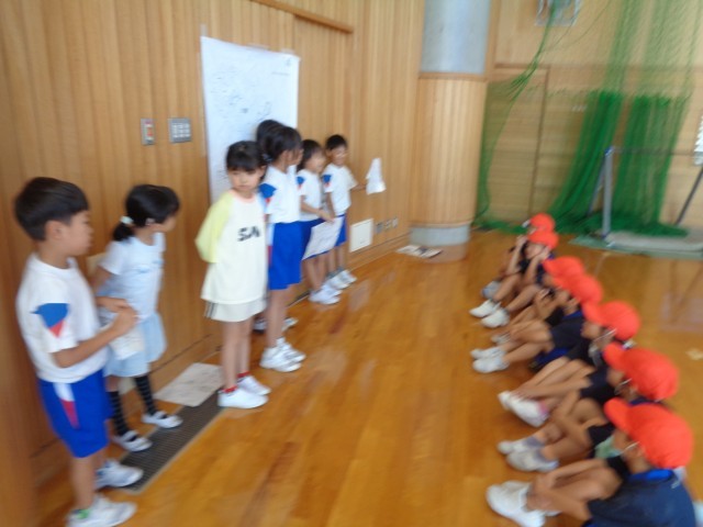 今日は、2年生さんに学校のことをクイズにして紹介してもらいました。話を聞きながらヒントを得て答えていました。