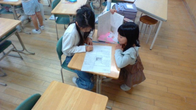 2年生では、国語科で一人読みに挑戦しています。文章から登場人物の気持ちを読み取ったり、読み方を考えたりしたことを友達と話し合いました。