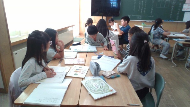 班の中で役割を決め、進行にそって意見をまとめる話合いをしました。班で決まったおすすめの一冊は、今度1年生に紹介しに行く予定です。