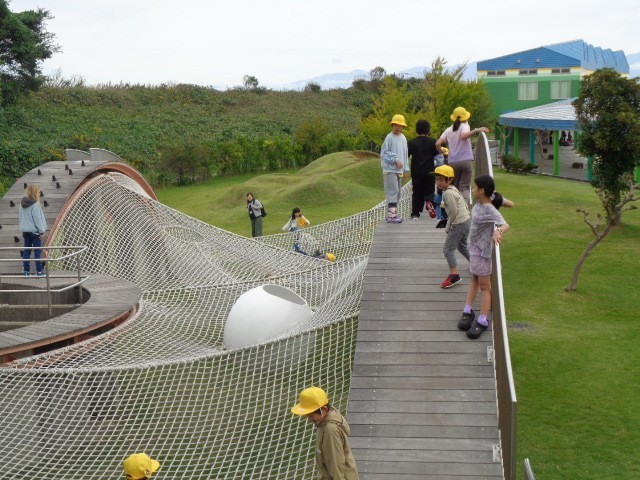 昼食後は、アスレチックで思いっきり遊びました。おにごっこをしたり、ハンモックのように寝転がったり、思い思いの時間を過ごすことができたようです。