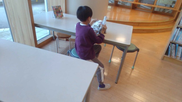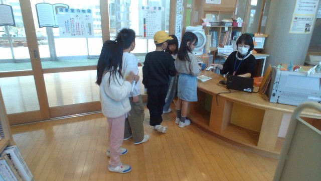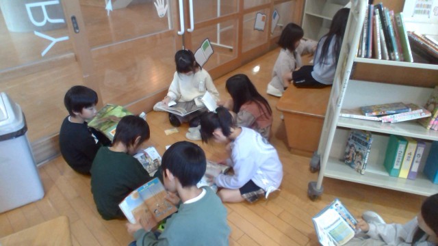 図書室で自分の好きな本を探して借りました。