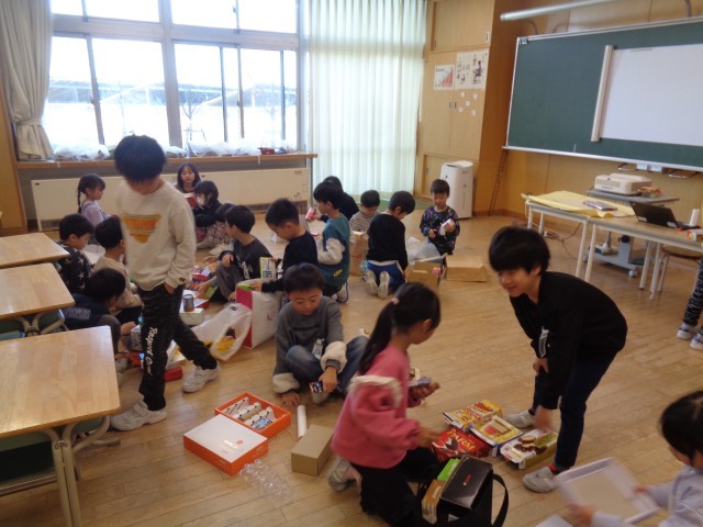 いろいろなかたちの箱などから、タワーを作ったり、動物に見立てたりしました。どうすれば高くなるのか、安定するのかなど、形の特性に注目しながら楽しく学習しました。