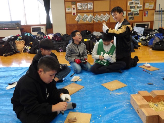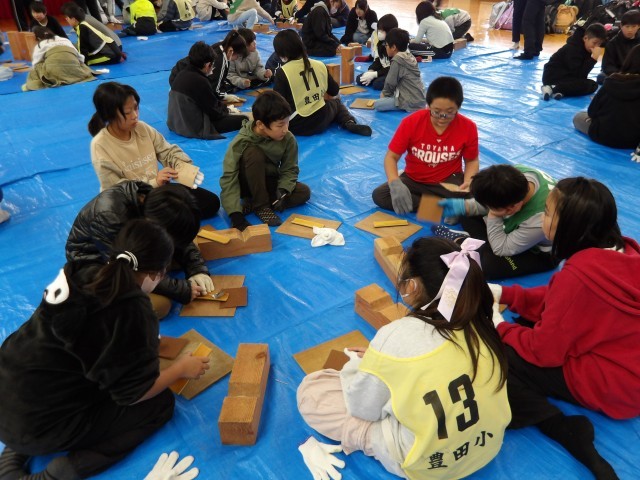 のこぎりや小刀を使って形を整え、やすりで滑らかになるように磨きました。