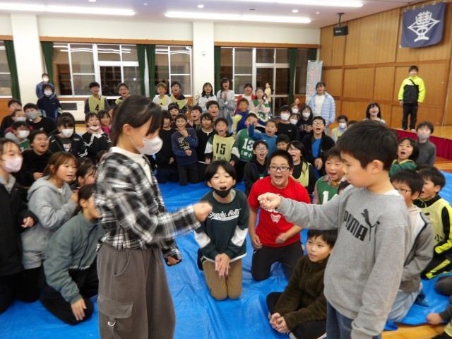 キャンドルサービスの様子です。ろうそくの火を見つめながら穏やかな時間を過ごしたり、もうじゅうがりゲームやじゃんけん列車で盛り上がったりしました。