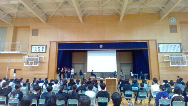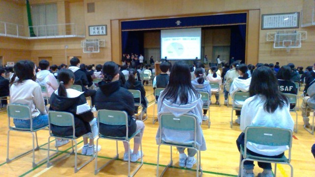 嶋之内先生をお招きして、学校保健委員会を行いました。先生からは姿勢についてお話をしていただきました。
