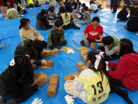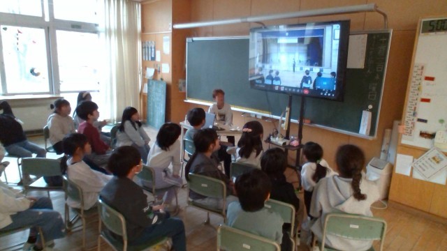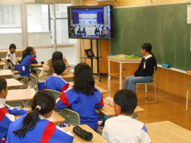 5年生の保健委員は、オンラインで実況中継を視聴している1・2・3年生の教室へ行き、説明やストレッチのお手本などの役割を果たしました。