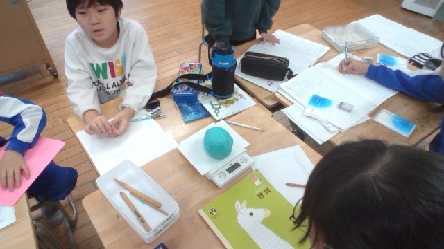 理科の学習で、物の形と重さについて学習しました。どんな形に変えると軽くなりそうなのかを予想して、実験に取り組みました。