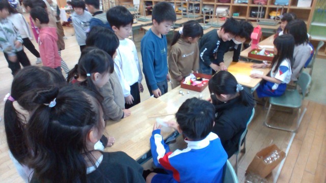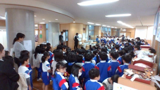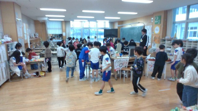 動くおもちゃを使ったお店に、1年生を招待しました。