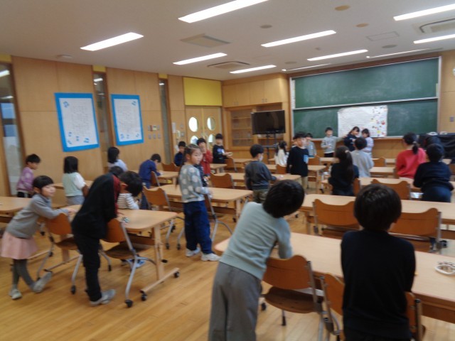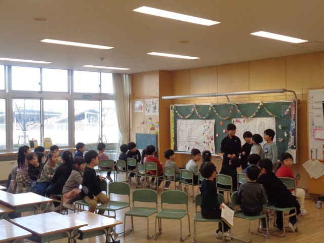 2学期の終わりに子供たちが企画した集会を行いました。椅子取りゲームやハンカチ落とし、みんなで歌を歌い、最後には全員そろって記念撮影をしました。