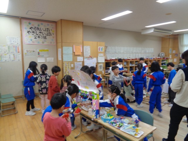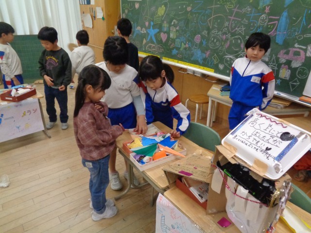 2年生さんの生活科「おもちゃランド」に招待してもらい、たくさん遊ばせてもらいました。たくさん楽しんだ子供たちは、後日お礼のメッセージを渡しました。