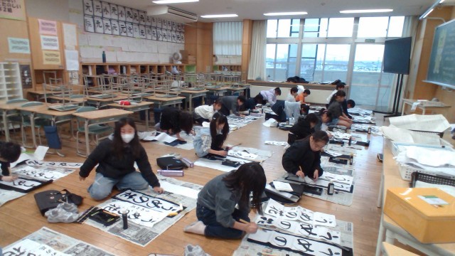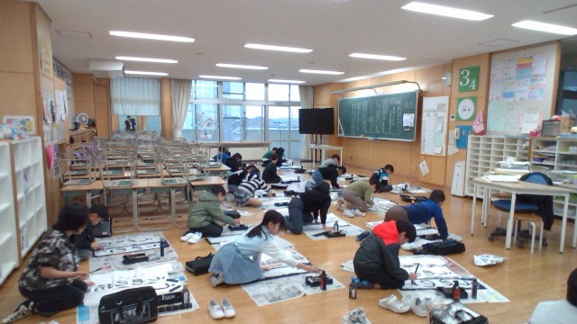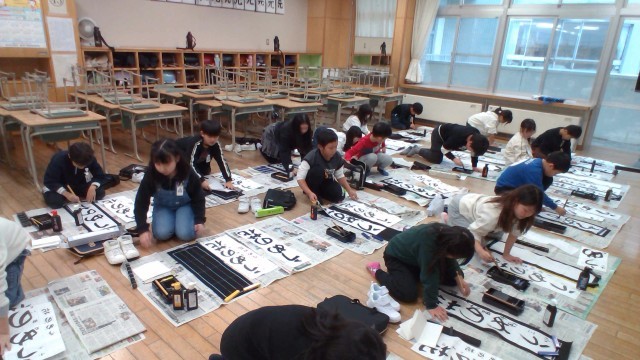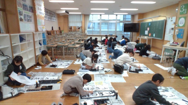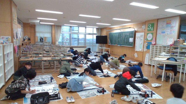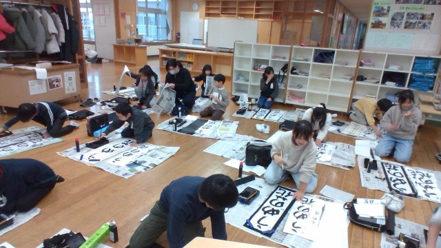 2時間目の校内書初大会では、集中して書き上げている姿が印象的でした。