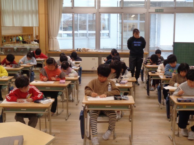 今日は今まで学習した漢字をテストしました。どの子も真剣に取り組んでいました。