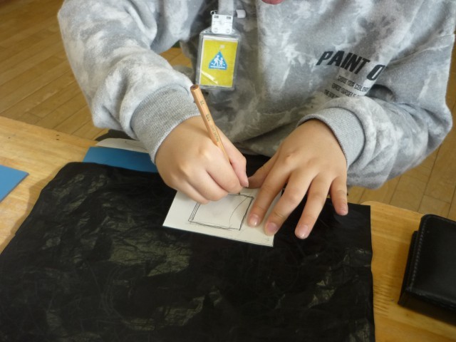 初めて彫刻刀を使った版画に挑戦しています。安全に気を付けて、三角刀、丸刀で彫り進めました。