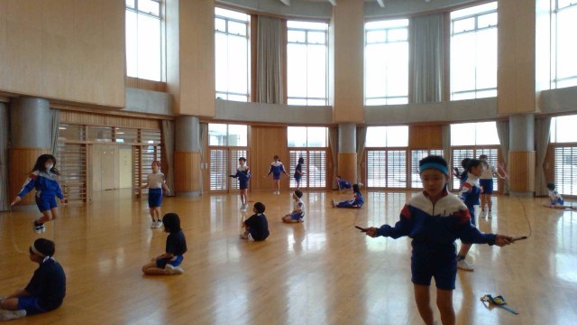 体育科では、なわとびで様々な跳び方に挑戦しています。
