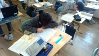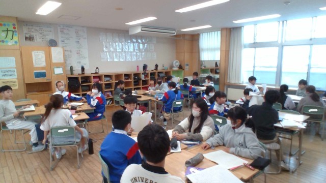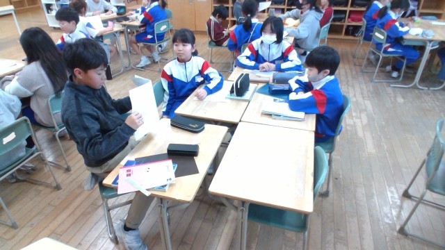 『もう一つの物語』をしています。今日は、自分で書き変えた物語を班の仲間と読み合いました。