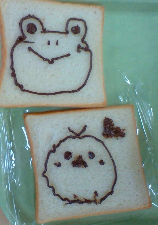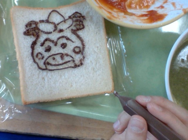 今日の給食は、色とりどりの献立でした。子供たちは、チョコペンを駆使し様々な絵を完成させました。子供たちは、楽しく、美味しく給食を完食していました。