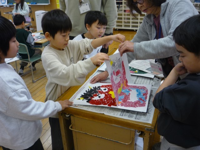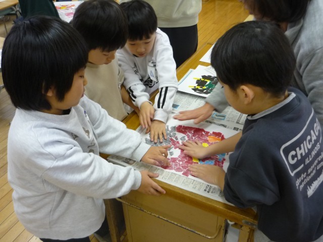 なかよし1班 1年生 図画工作科「カラータック版画」