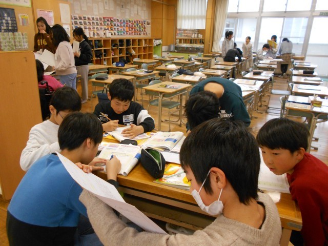 自分が選んだ自然災害について、調べたことをきき合いました。