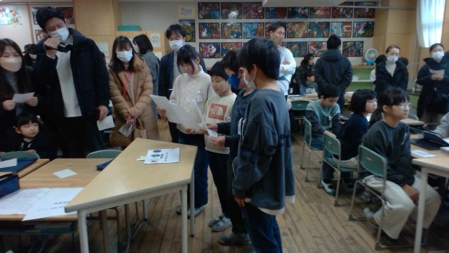 学び発表会では、総合の中間発表を行いました。友達や家族からアドバイスをもらい、「自分ではいいと思っていたけれど、もっとよくできると分かった」「もっと伝わりやすい発表にできそうだ」と振り返っていました。