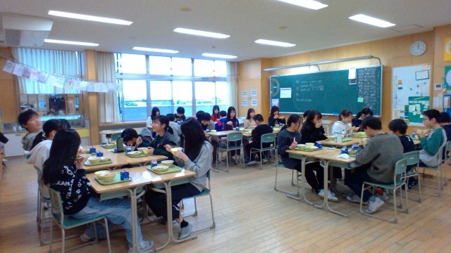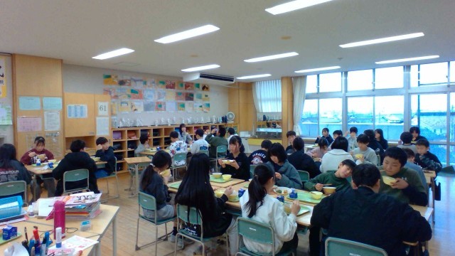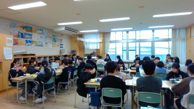 6年生では、宿泊で同じだった仲間と給食を食べました。