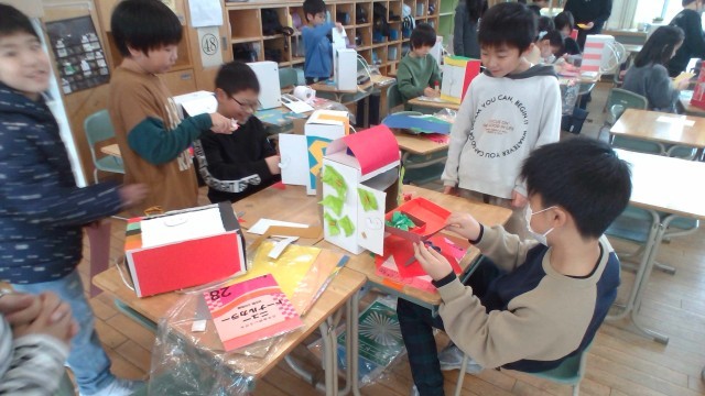 3年生は図画工作科でワクワクスーパーランドセルをつくっています。自分の好きなものをランドセルの中に詰められるように、頑張っています。