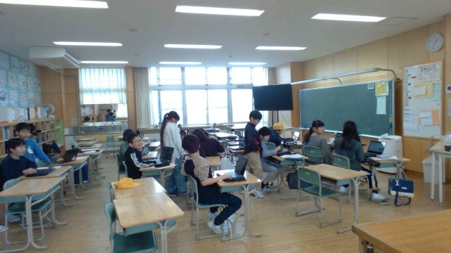 総合のスライドをちがうクラスの友達に発表しました。