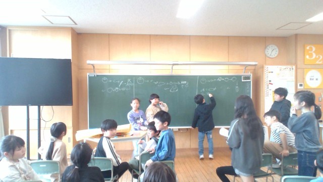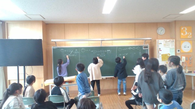 3年2組は、学級集会で絵しりとりをしました。