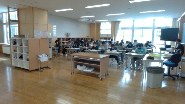 4年生の学習がどこまで身に付いているか、学力調査を行いました。真剣に問題と向き合っていました。