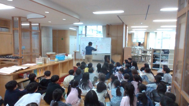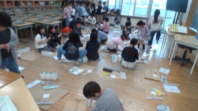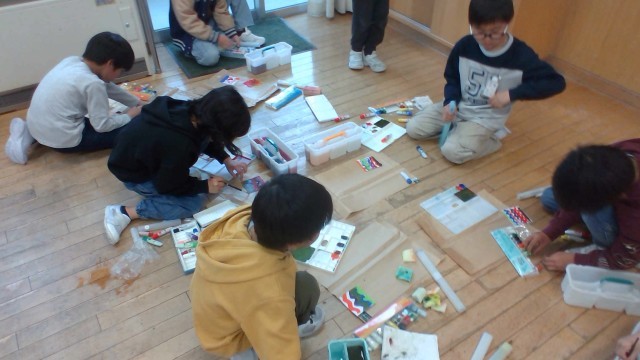 指を使ったり、水を使って絵の具を延ばしたりして工夫をして描きました。