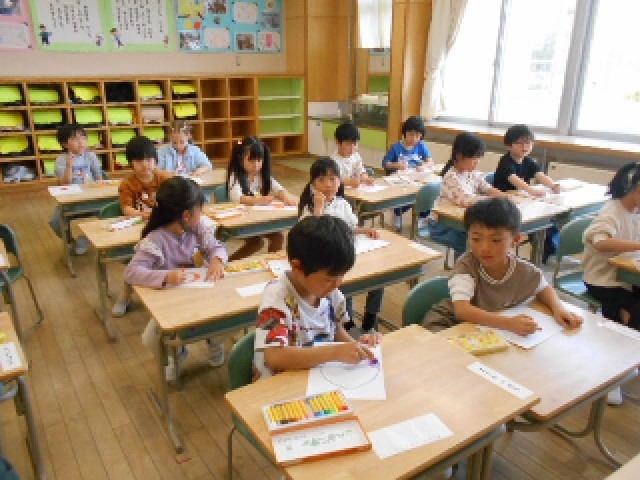 自分を元気づけてくれるようなおひさまをめざして、作品作りに取り組みました。それぞれオリジナルのおひさまを描き上げていました。