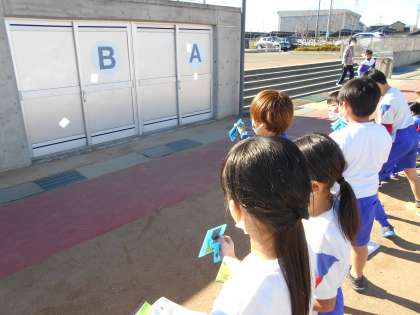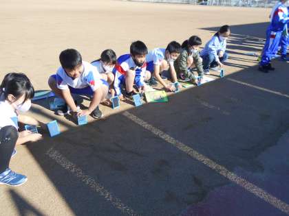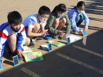 今日は天気がよく理科の実験日和でした。3年生はグラウンドに出て、鏡を使った実験を行いました。