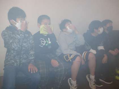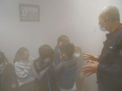 煙中体験で、火災時の避難の難しさを実感しました。