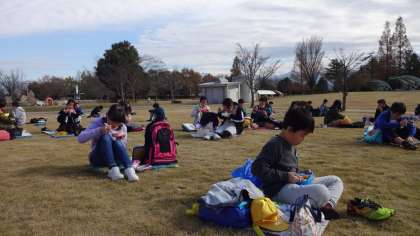 昼食は健康パークの芝生で食べました。食後は、体を動かして遊びました。