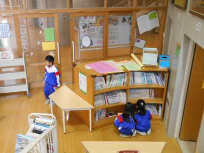 図書室では、「ブック2」のイベント中。子供たちは、お気に入りの本を探していました。
