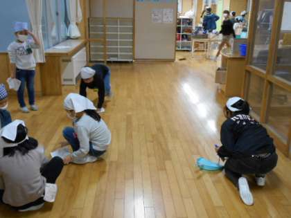 縦割り清掃では、高学年が下級生に掃除の仕方を指導する頼もしい場面も見られます。