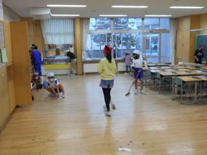 手本となるように上級生は、張り切って清掃に取り組み、その姿をみて下級生も一生懸命清掃に取り組んでいます。