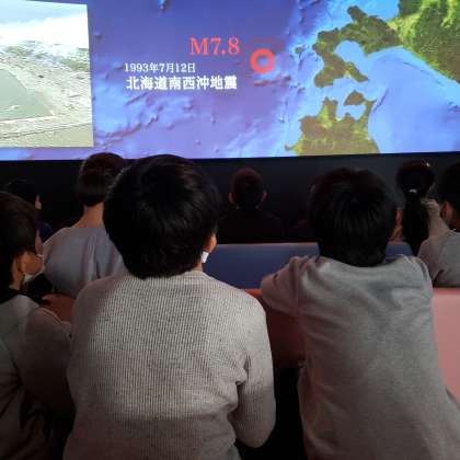 地震発生のメカニズムについて、映像をみながら学びました。